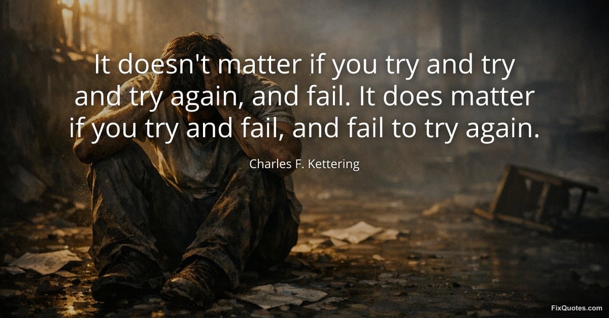 Kettering, Charles F. "It doesn't matter if you try and try and try again, and fail. It does matter if you try and fail, and fail to try again." FixQuotes. January 13, 2026. https://fixquotes.com/quotes/it-doesnt-matter-if-you-try-and-try-and-try-again-9682/.