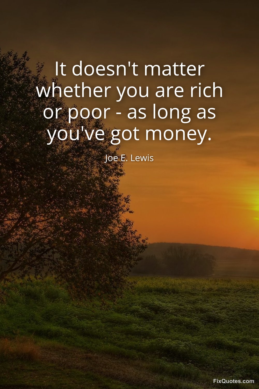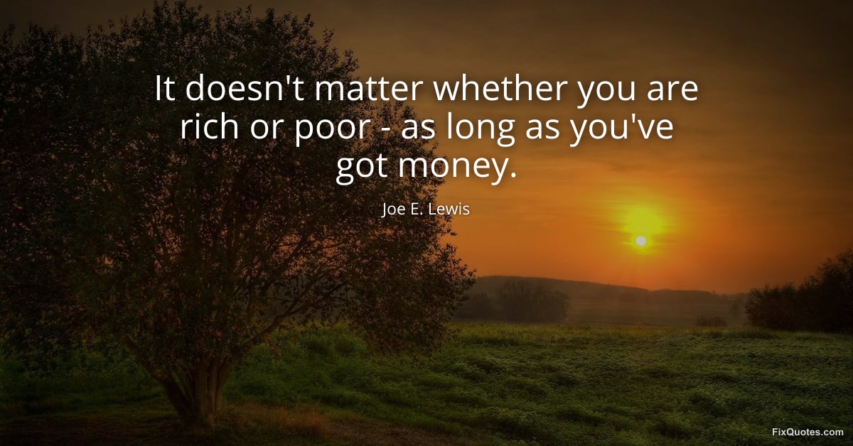 Lewis, Joe E. "It doesn't matter whether you are rich or poor - as long as you've got money." FixQuotes. January 16, 2026. https://fixquotes.com/quotes/it-doesnt-matter-whether-you-are-rich-or-poor-112638/.