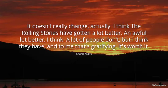 Watts, Charlie. (2026, January 17). It doesn't really change, actually. I think The Rolling Stones have gotten a lot better. An awful lot better, I think. A lot of people don't, but I think they have, and to me that's gratifying. It's worth it. FixQuotes. https://fixquotes.com/quotes/it-doesnt-really-change-actually-i-think-the-51036/