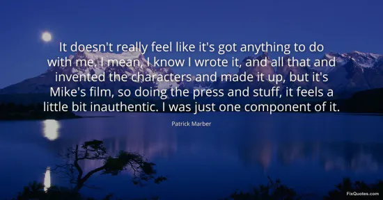 Marber, Patrick. (2026, January 15). It doesn't really feel like it's got anything to do with me. I mean, I know I wrote it, and all that and invented the characters and made it up, but it's Mike's film, so doing the press and stuff, it feels a little bit inauthentic. I was just one component of it. FixQuotes. https://fixquotes.com/quotes/it-doesnt-really-feel-like-its-got-anything-to-do-70922/