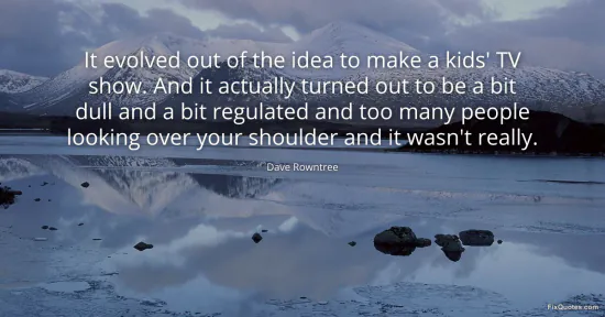Rowntree, Dave. "It evolved out of the idea to make a kids' TV show. And it actually turned out to be a bit dull and a bit regulated and too many people looking over your shoulder and it wasn't really." FixQuotes. February 16, 2026. https://fixquotes.com/quotes/it-evolved-out-of-the-idea-to-make-a-kids-tv-show-147417/.