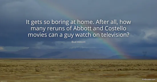 Abbott, Bud. "It gets so boring at home. After all, how many reruns of Abbott and Costello movies can a guy watch on television?" FixQuotes. January 16, 2026. https://fixquotes.com/quotes/it-gets-so-boring-at-home-after-all-how-many-118316/.