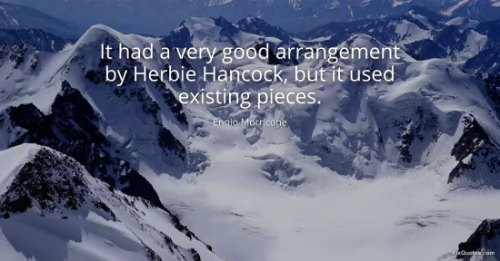 Morricone, Ennio. (2026, January 16). It had a very good arrangement by Herbie Hancock, but it used existing pieces. FixQuotes. https://fixquotes.com/quotes/it-had-a-very-good-arrangement-by-herbie-hancock-100425/