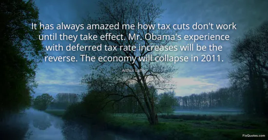 Laffer, Arthur. (2026, January 16). It has always amazed me how tax cuts don't work until they take effect. Mr. Obama's experience with deferred tax rate increases will be the reverse. The economy will collapse in 2011. FixQuotes. https://fixquotes.com/quotes/it-has-always-amazed-me-how-tax-cuts-dont-work-139073/