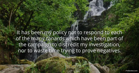 Garrison, Jim. "It has been my policy not to respond to each of the many canards which have been part of the campaign to discredit my investigation, nor to waste time trying to prove negatives." FixQuotes. January 16, 2026. https://fixquotes.com/quotes/it-has-been-my-policy-not-to-respond-to-each-of-95714/.