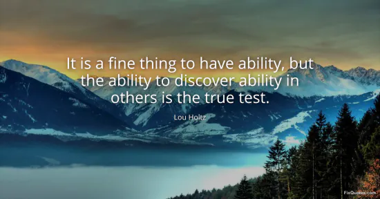 Holtz, Lou. "It is a fine thing to have ability, but the ability to discover ability in others is the true test." FixQuotes. January 17, 2026. https://fixquotes.com/quotes/it-is-a-fine-thing-to-have-ability-but-the-27513/.
