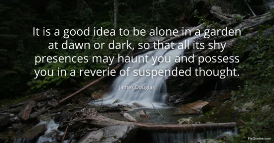 Douglas, James. "It is a good idea to be alone in a garden at dawn or dark, so that all its shy presences may haunt you and possess you in a reverie of suspended thought." FixQuotes. February 18, 2026. https://fixquotes.com/quotes/it-is-a-good-idea-to-be-alone-in-a-garden-at-dawn-91124/.