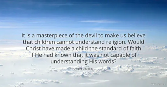Moody, Dwight L. (2026, January 17). It is a masterpiece of the devil to make us believe that children cannot understand religion. Would Christ have made a child the standard of faith if He had known that it was not capable of understanding His words? FixQuotes. https://fixquotes.com/quotes/it-is-a-masterpiece-of-the-devil-to-make-us-30945/