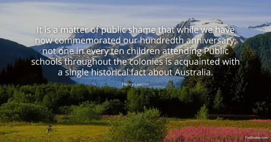 Lawson, Henry. (2026, January 17). It is a matter of public shame that while we have now commemorated our hundredth anniversary, not one in every ten children attending Public schools throughout the colonies is acquainted with a single historical fact about Australia. FixQuotes. https://fixquotes.com/quotes/it-is-a-matter-of-public-shame-that-while-we-have-55484/