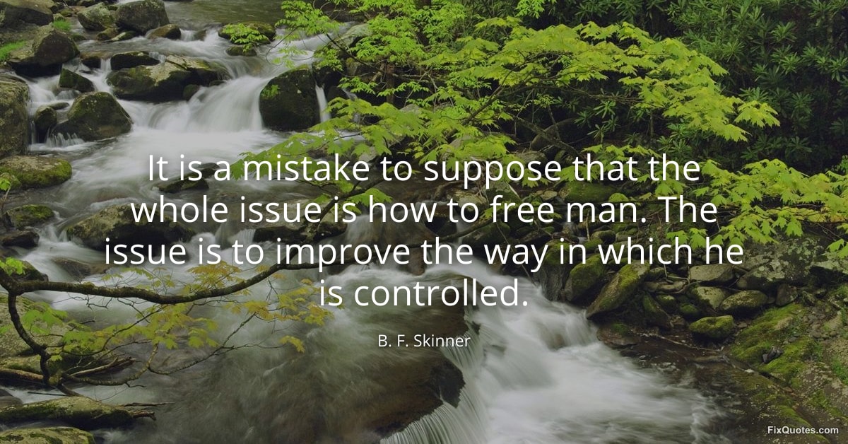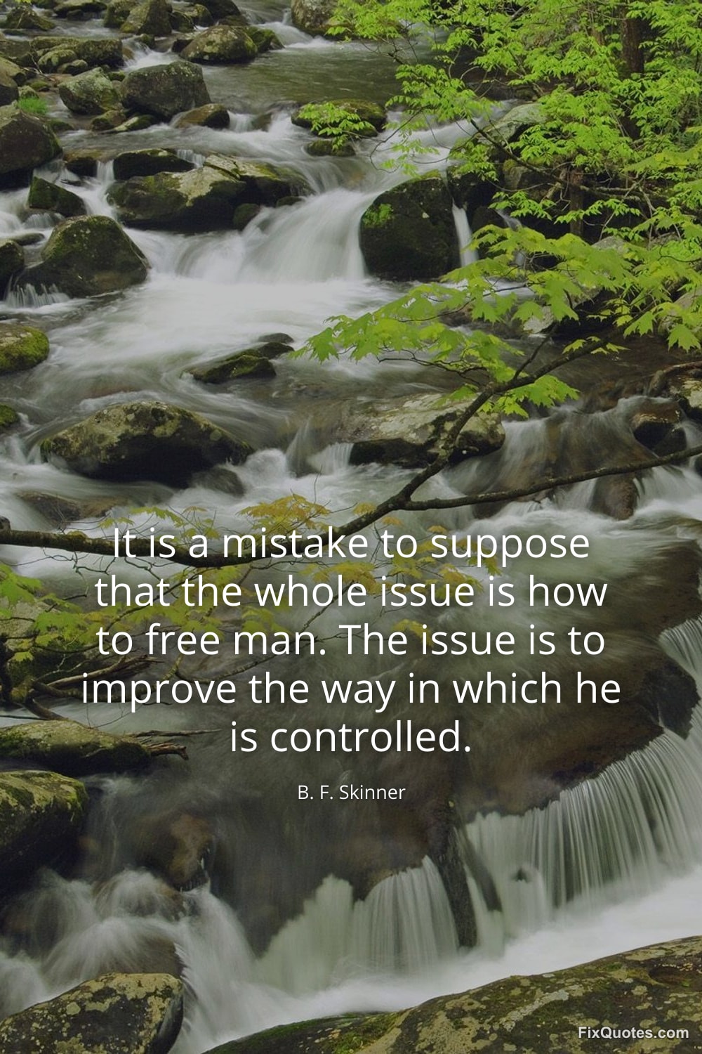 Skinner, B. F. (2026, February 9). It is a mistake to suppose that the whole issue is how to free man. The issue is to improve the way in which he is controlled. FixQuotes. https://fixquotes.com/quotes/it-is-a-mistake-to-suppose-that-the-whole-issue-173434/