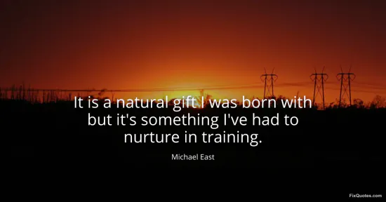 East, Michael. "It is a natural gift I was born with but it's something I've had to nurture in training." FixQuotes. January 16, 2026. https://fixquotes.com/quotes/it-is-a-natural-gift-i-was-born-with-but-its-127848/.