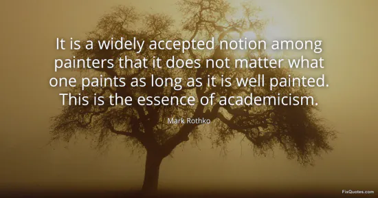 Rothko, Mark. (2026, January 18). It is a widely accepted notion among painters that it does not matter what one paints as long as it is well painted. This is the essence of academicism. FixQuotes. https://fixquotes.com/quotes/it-is-a-widely-accepted-notion-among-painters-18461/