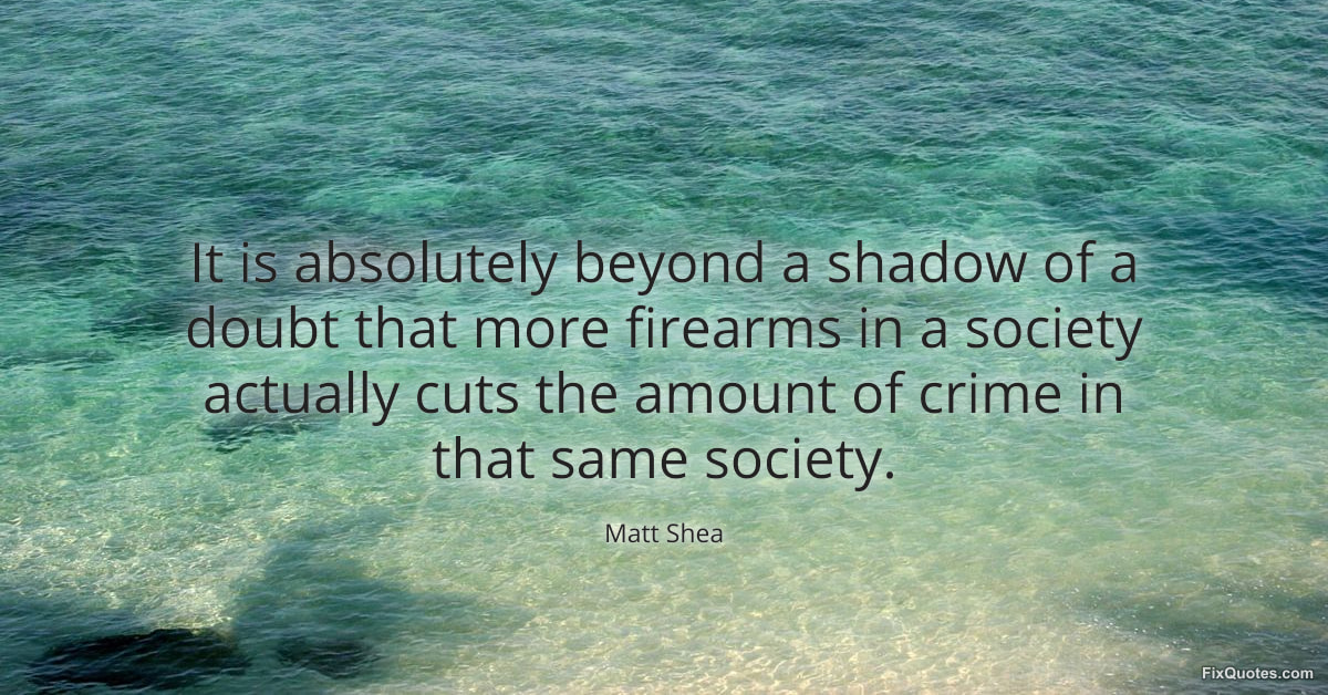 Shea, Matt. "It is absolutely beyond a shadow of a doubt that more firearms in a society actually cuts the amount of crime in that same society." FixQuotes. February 9, 2026. https://fixquotes.com/quotes/it-is-absolutely-beyond-a-shadow-of-a-doubt-that-184990/.