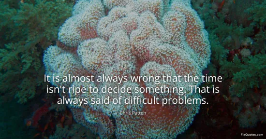 Patten, Chris. (2026, January 17). It is almost always wrong that the time isn't ripe to decide something. That is always said of difficult problems. FixQuotes. https://fixquotes.com/quotes/it-is-almost-always-wrong-that-the-time-isnt-ripe-41509/