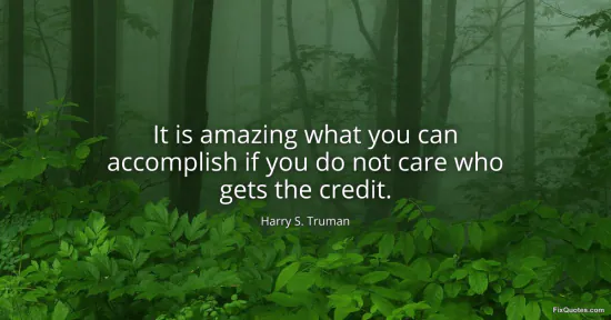 Truman, Harry S. (2026, January 13). It is amazing what you can accomplish if you do not care who gets the credit. FixQuotes. https://fixquotes.com/quotes/it-is-amazing-what-you-can-accomplish-if-you-do-35755/