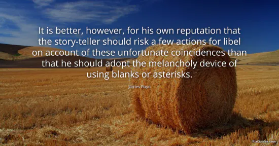 Payn, James. (2026, January 17). It is better, however, for his own reputation that the story-teller should risk a few actions for libel on account of these unfortunate coincidences than that he should adopt the melancholy device of using blanks or asterisks. FixQuotes. https://fixquotes.com/quotes/it-is-better-however-for-his-own-reputation-that-54944/