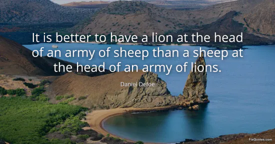 Defoe, Daniel. (2026, February 16). It is better to have a lion at the head of an army of sheep than a sheep at the head of an army of lions. FixQuotes. https://fixquotes.com/quotes/it-is-better-to-have-a-lion-at-the-head-of-an-148742/