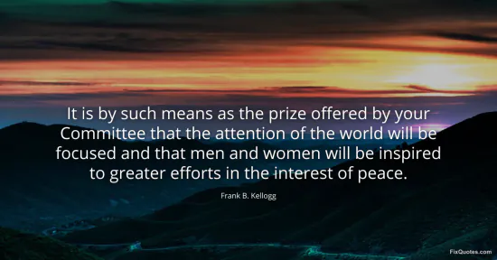 Kellogg, Frank B. (2026, January 15). It is by such means as the prize offered by your Committee that the attention of the world will be focused and that men and women will be inspired to greater efforts in the interest of peace. FixQuotes. https://fixquotes.com/quotes/it-is-by-such-means-as-the-prize-offered-by-your-143838/