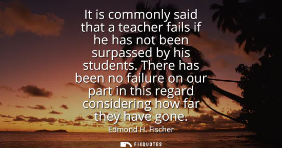 A real measure of teaching is not obedience or imitation, but the moment a learner moves past the master and claims new ground. Edmond H. Fischer speaks from the vantage of a scientist who watched his students push the frontier further than he and his peers could alone, and he treats that as the highest success. The line pivots on a generous inversion of ego: instead of fearing being outdone, the mentor welcomes it as proof that knowledge is alive and multiplying.