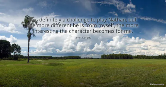 Lafferty, James. (2026, January 17). It is definitely a challenge to play Nathan, but the more different he is from myself, the more interesting the character becomes for me. FixQuotes. https://fixquotes.com/quotes/it-is-definitely-a-challenge-to-play-nathan-but-56440/