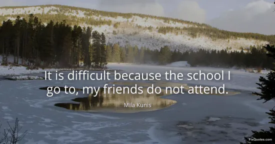 Kunis, Mila. (2026, January 16). It is difficult because the school I go to, my friends do not attend. FixQuotes. https://fixquotes.com/quotes/it-is-difficult-because-the-school-i-go-to-my-108566/
