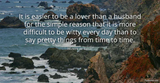 Balzac, Honore de. "It is easier to be a lover than a husband for the simple reason that it is more difficult to be witty every day than to say pretty things from time to time." FixQuotes. January 17, 2026. https://fixquotes.com/quotes/it-is-easier-to-be-a-lover-than-a-husband-for-the-33258/.