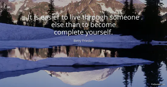 Friedan, Betty. (2026, January 16). It is easier to live through someone else than to become complete yourself. FixQuotes. https://fixquotes.com/quotes/it-is-easier-to-live-through-someone-else-than-to-117053/