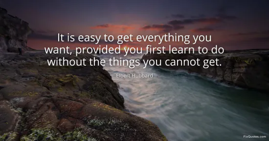 Hubbard, Elbert. (2026, January 15). It is easy to get everything you want, provided you first learn to do without the things you cannot get. FixQuotes. https://fixquotes.com/quotes/it-is-easy-to-get-everything-you-want-provided-33178/