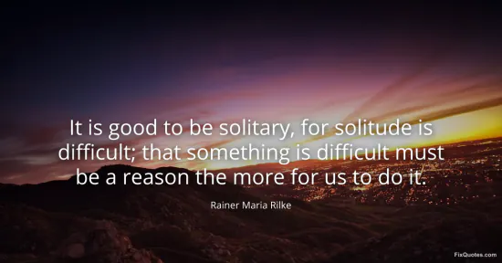 "It is good to be solitary, for solitude is difficult; that something is difficult must be a reason the more for us to do it"