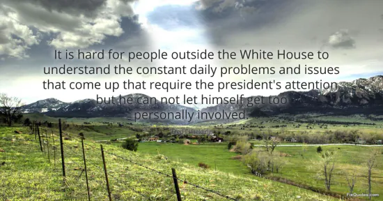 "It is hard for people outside the White House to understand the constant daily problems and issues that come up that require the president's attention, but he can not let himself get too personally involved." FixQuotes, 15 Jan. 2026, https://fixquotes.com/quotes/it-is-hard-for-people-outside-the-white-house-to-167436/. Accessed 22 Feb. 2026.