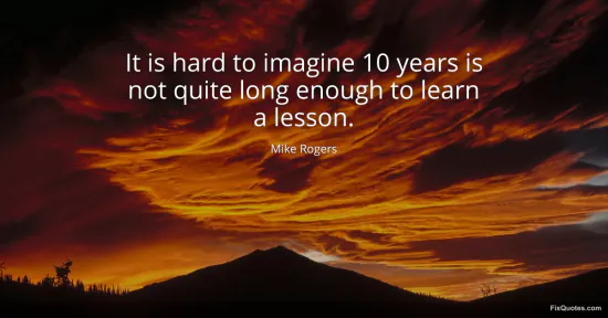 Rogers, Mike. (2026, January 16). It is hard to imagine 10 years is not quite long enough to learn a lesson. FixQuotes. https://fixquotes.com/quotes/it-is-hard-to-imagine-10-years-is-not-quite-long-100002/