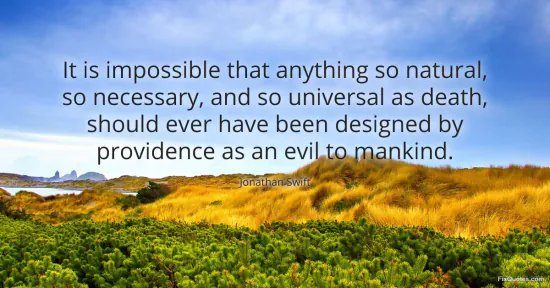 Swift, Jonathan. (2026, January 15). It is impossible that anything so natural, so necessary, and so universal as death, should ever have been designed by providence as an evil to mankind. FixQuotes. https://fixquotes.com/quotes/it-is-impossible-that-anything-so-natural-so-148777/