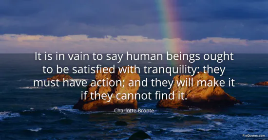 Bronte, Charlotte. (2026, January 17). It is in vain to say human beings ought to be satisfied with tranquility: they must have action; and they will make it if they cannot find it. FixQuotes. https://fixquotes.com/quotes/it-is-in-vain-to-say-human-beings-ought-to-be-59900/
