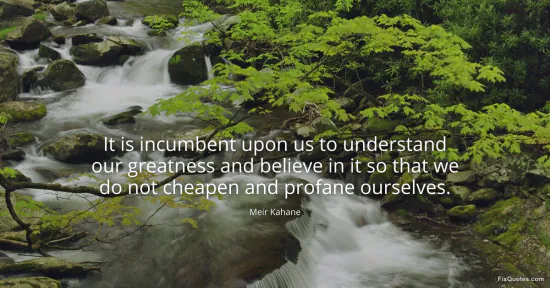 Kahane, Meir. (2026, January 15). It is incumbent upon us to understand our greatness and believe in it so that we do not cheapen and profane ourselves. FixQuotes. https://fixquotes.com/quotes/it-is-incumbent-upon-us-to-understand-our-149031/