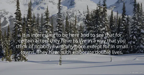 Condon, Bill. "It is interesting to be here and to see that for certain actors they have to live in a way that you think of nobody living anymore except for in small towns. They have such elaborate double lives." FixQuotes. January 17, 2026. https://fixquotes.com/quotes/it-is-interesting-to-be-here-and-to-see-that-for-38491/.