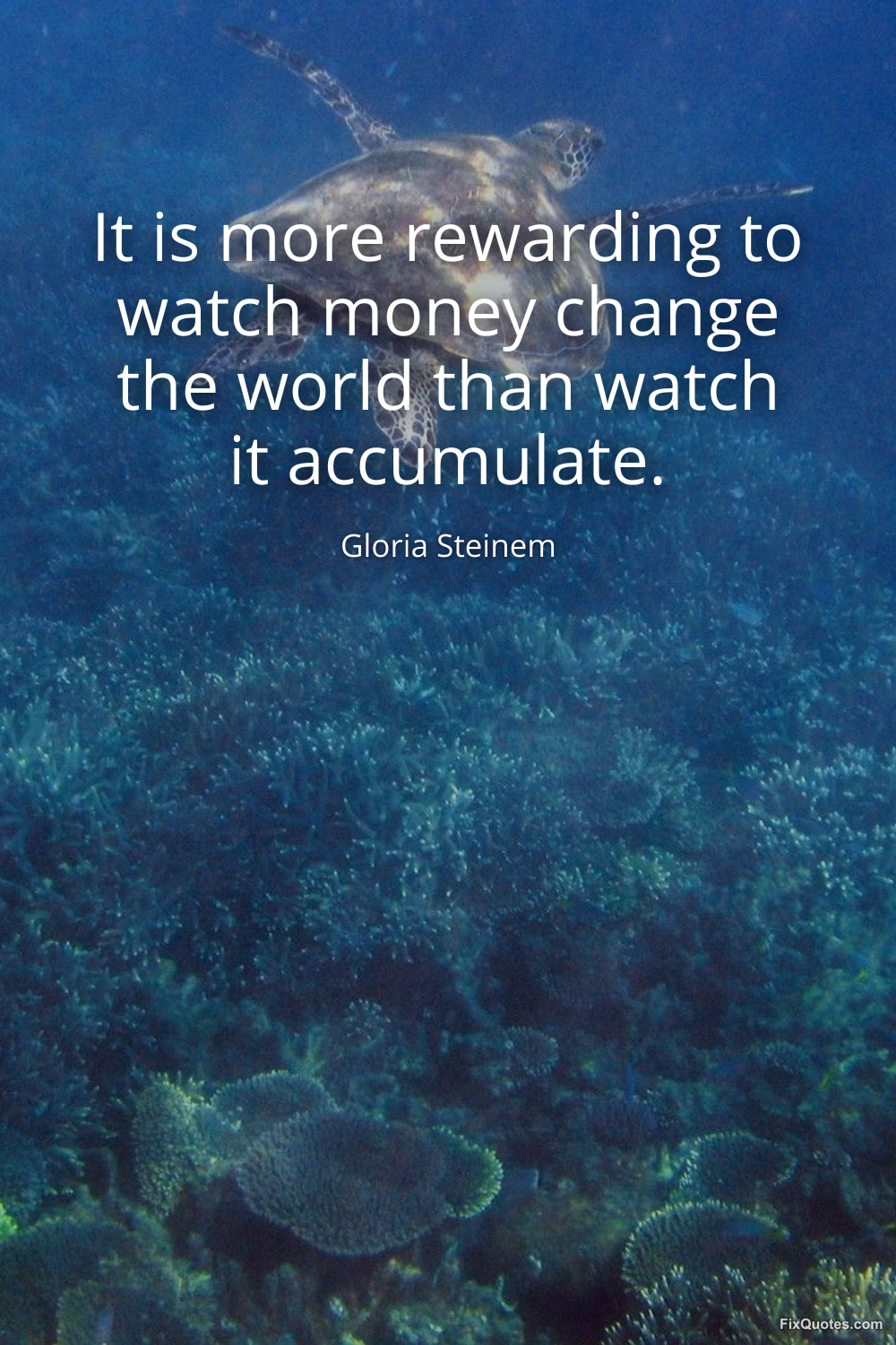 Steinem, Gloria. "It is more rewarding to watch money change the world than watch it accumulate." FixQuotes. January 16, 2026. https://fixquotes.com/quotes/it-is-more-rewarding-to-watch-money-change-the-125976/.