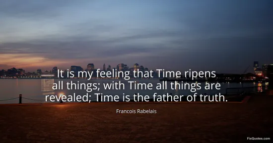 Rabelais, Francois. (2026, January 16). It is my feeling that Time ripens all things; with Time all things are revealed; Time is the father of truth. FixQuotes. https://fixquotes.com/quotes/it-is-my-feeling-that-time-ripens-all-things-with-126418/