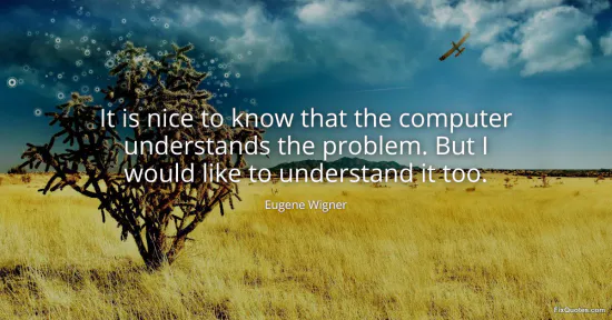 Evidence: ... Eugene Wigner True. The problem is that scientists only want to understand the problem in terms of their quasi ... It is nice to know that the computer understands the problem. But I would like to understand it too.” – Eugene ... Other candidates (1) Eugene Wigner (Eugene Wigner) compilation43.4% ost important it is the dedication the commitment the interest and the will to know something and to understand it th... |