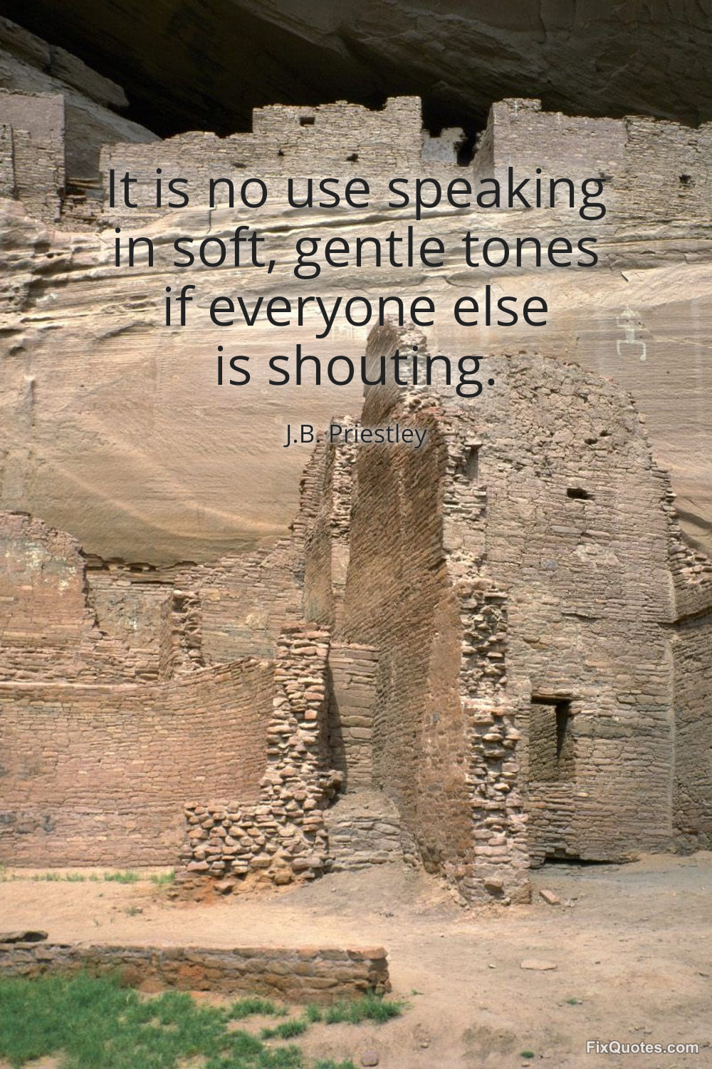 Priestley, J.B. "It is no use speaking in soft, gentle tones if everyone else is shouting." FixQuotes. January 16, 2026. https://fixquotes.com/quotes/it-is-no-use-speaking-in-soft-gentle-tones-if-133600/.