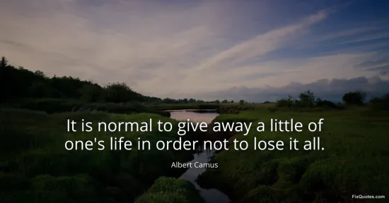 Camus, Albert. "It is normal to give away a little of one's life in order not to lose it all." FixQuotes. January 15, 2026. https://fixquotes.com/quotes/it-is-normal-to-give-away-a-little-of-ones-life-15138/.