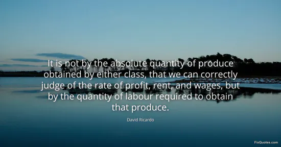 Ricardo, David. (2026, January 15). It is not by the absolute quantity of produce obtained by either class, that we can correctly judge of the rate of profit, rent, and wages, but by the quantity of labour required to obtain that produce. FixQuotes. https://fixquotes.com/quotes/it-is-not-by-the-absolute-quantity-of-produce-141357/