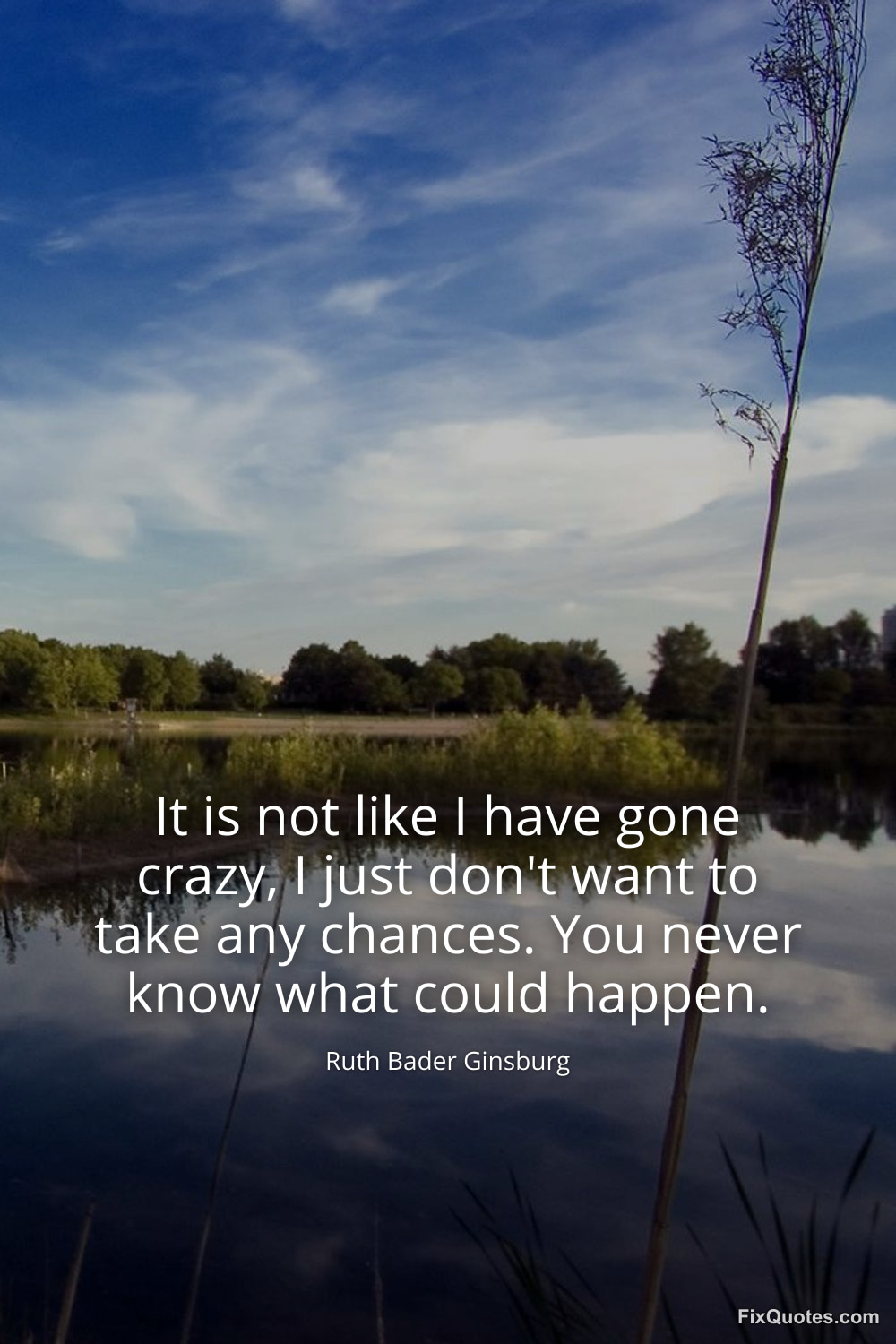 Ginsburg, Ruth Bader. (2026, January 16). It is not like I have gone crazy, I just don't want to take any chances. You never know what could happen. FixQuotes. https://fixquotes.com/quotes/it-is-not-like-i-have-gone-crazy-i-just-dont-want-132779/