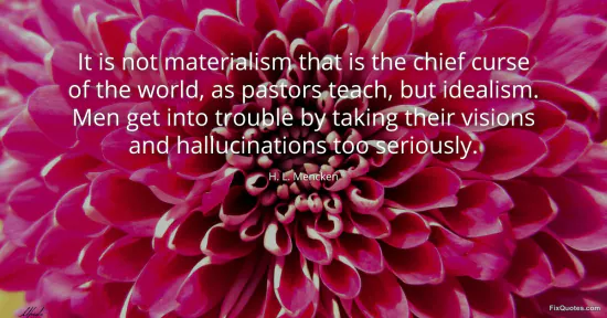 Mencken, H. L. (2026, January 17). It is not materialism that is the chief curse of the world, as pastors teach, but idealism. Men get into trouble by taking their visions and hallucinations too seriously. FixQuotes. https://fixquotes.com/quotes/it-is-not-materialism-that-is-the-chief-curse-of-35788/