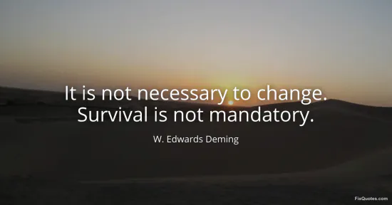 Deming, W. Edwards. "It is not necessary to change. Survival is not mandatory." FixQuotes. January 15, 2026. https://fixquotes.com/quotes/it-is-not-necessary-to-change-survival-is-not-15011/.