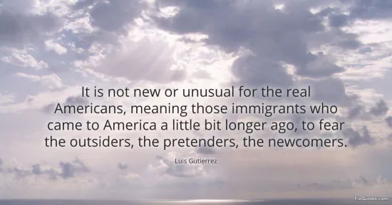 Gutierrez, Luis. (2026, January 15). It is not new or unusual for the real Americans, meaning those immigrants who came to America a little bit longer ago, to fear the outsiders, the pretenders, the newcomers. FixQuotes. https://fixquotes.com/quotes/it-is-not-new-or-unusual-for-the-real-americans-157955/