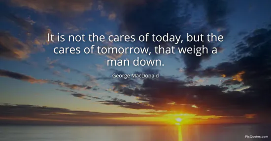 MacDonald, George. (2026, January 15). It is not the cares of today, but the cares of tomorrow, that weigh a man down. FixQuotes. https://fixquotes.com/quotes/it-is-not-the-cares-of-today-but-the-cares-of-143878/