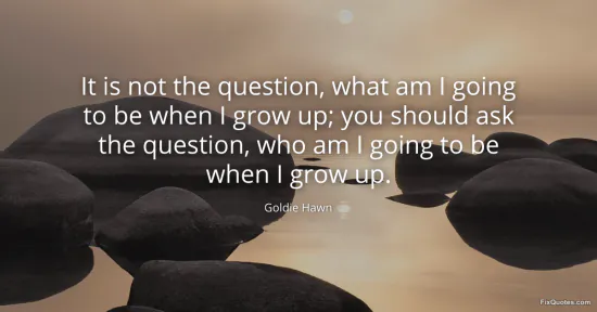 Hawn, Goldie. (2026, January 15). It is not the question, what am I going to be when I grow up; you should ask the question, who am I going to be when I grow up. FixQuotes. https://fixquotes.com/quotes/it-is-not-the-question-what-am-i-going-to-be-when-67914/