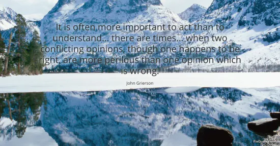 Grierson, John. "It is often more important to act than to understand... there are times... when two conflicting opinions, though one happens to be right, are more perilous than one opinion which is wrong." FixQuotes. January 18, 2026. https://fixquotes.com/quotes/it-is-often-more-important-to-act-than-to-17618/.