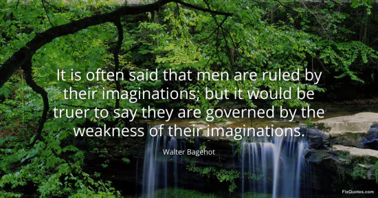 Bagehot, Walter. "It is often said that men are ruled by their imaginations; but it would be truer to say they are governed by the weakness of their imaginations." FixQuotes. January 15, 2026. https://fixquotes.com/quotes/it-is-often-said-that-men-are-ruled-by-their-63892/.