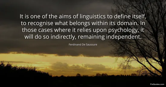Saussure, Ferdinand De. "It is one of the aims of linguistics to define itself, to recognise what belongs within its domain. In those cases where it relies upon psychology, it will do so indirectly, remaining independent." FixQuotes. January 17, 2026. https://fixquotes.com/quotes/it-is-one-of-the-aims-of-linguistics-to-define-70535/.